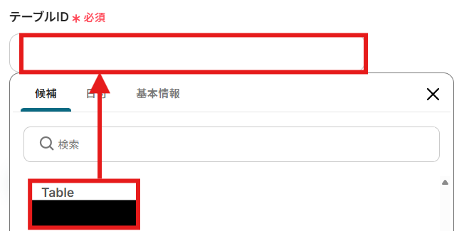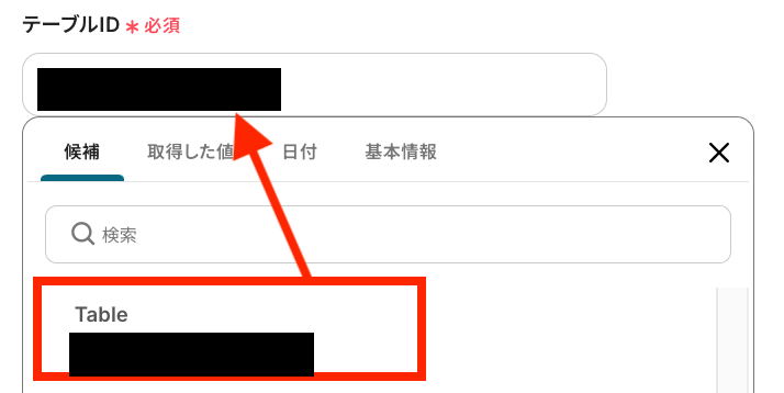 「テーブルID」も候補から選択します。
