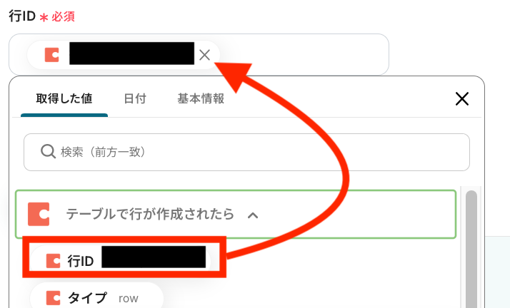 「列ID」も入力しますが、これは候補ではなく、先ほど取得した値 から選択しましょう。