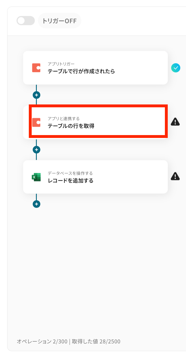 なお、この取得した値をこの後の設定で活用することで、Microsoft Excelのレコードに自動追加可能です。