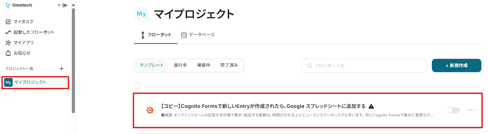 これで、マイプロジェクトにテンプレートがコピーされました。