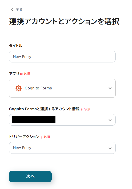 Cognito Formsのトリガー設定およびGoogle スプレッドシートのアクション設定