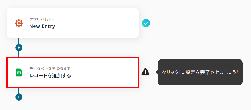 最後に、Cognito Formsから取得した情報を、Google スプレッドシートに追加する設定を行います。 下側の赤枠をクリックしてください。