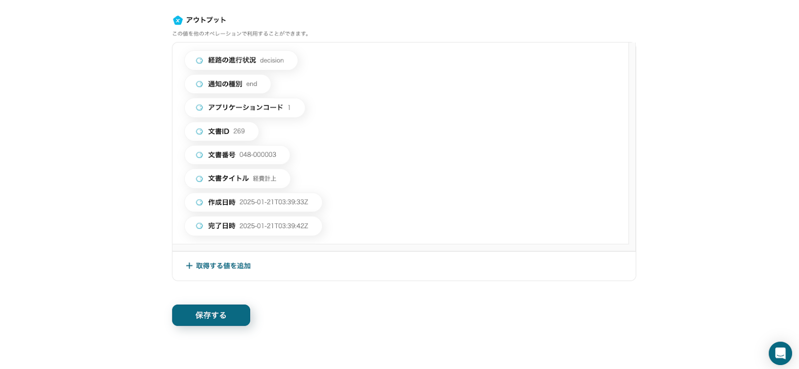 取得した値を確認したら保存しましょう。