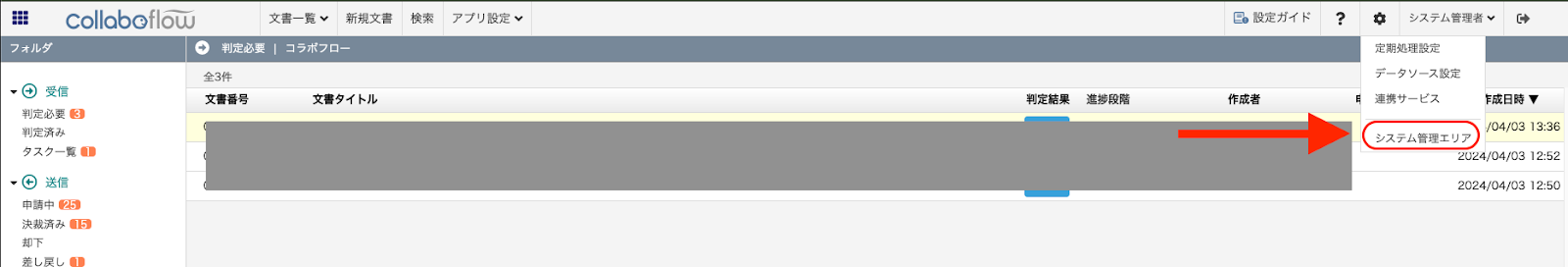 設定が完了したら、コラボフローで申請の承認操作を行ってから「テスト」をクリックしましょう。
