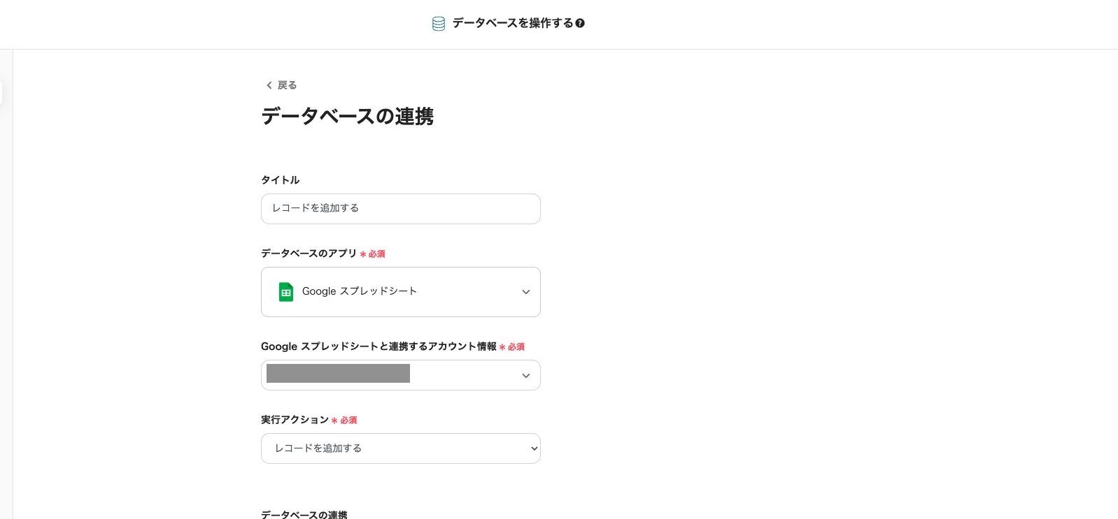 ステップ5:Google スプレッドシートのアクション設定 次に、Google スプレッドシートにデータを追加する設定を行います。 「レコードを追加する」をクリックしてください。