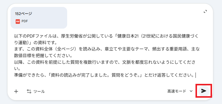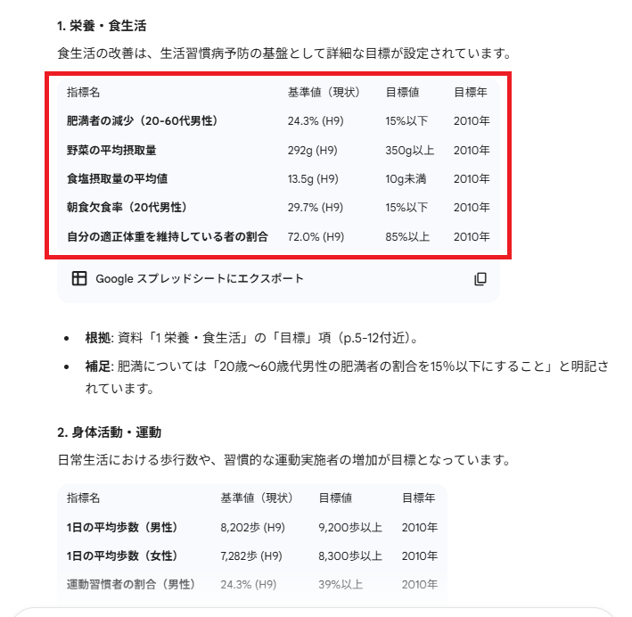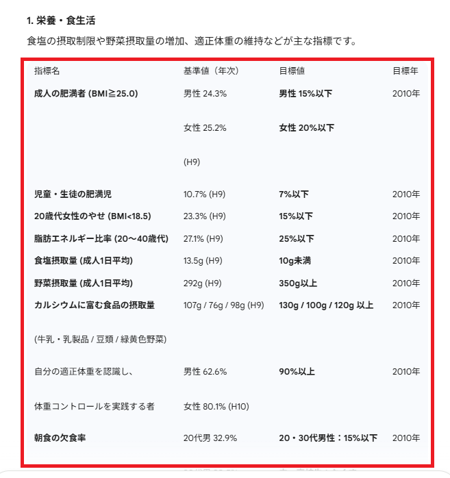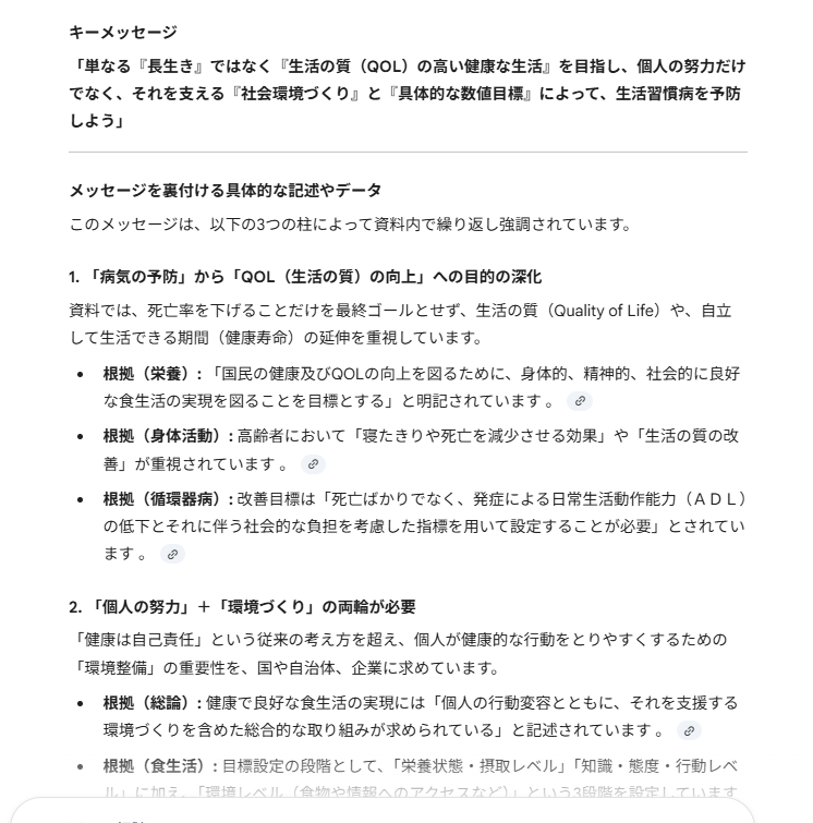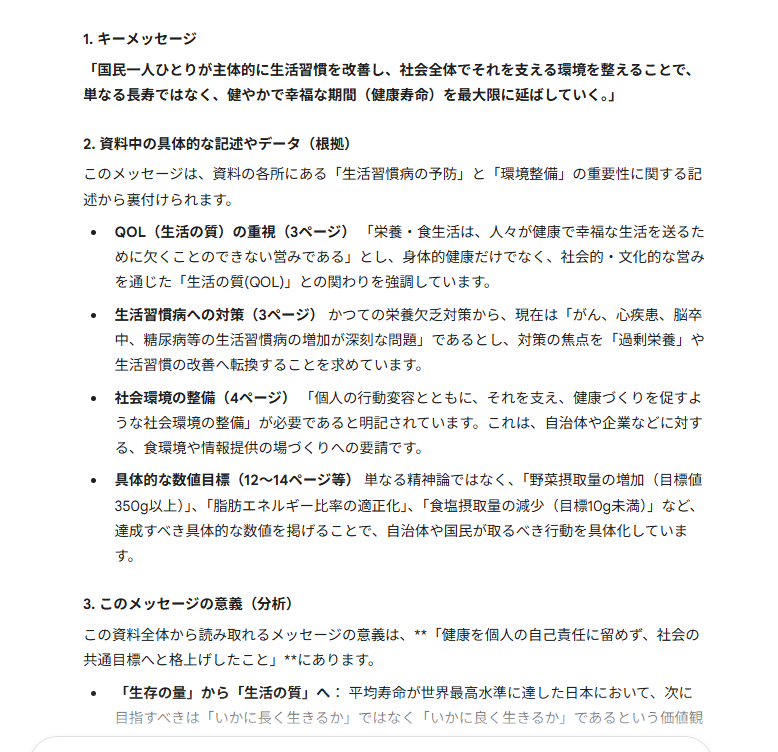 使用したのは、厚生労働省が公開している「健康日本21(21世紀における国民健康づくり運動)」の全152ページに及ぶ膨大なPDF資料です。