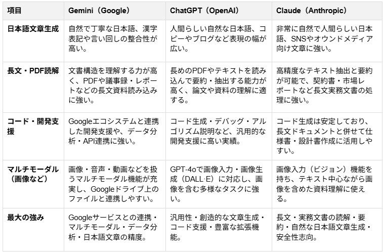 📶Gemini・ChatGPT・Claudeの強みを比較
