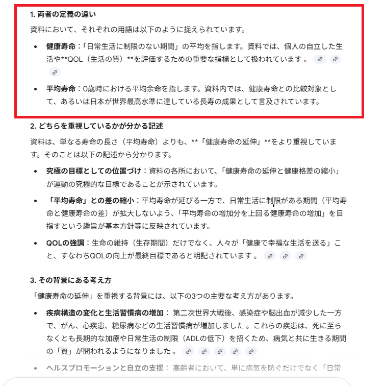 - 文脈の理解力:単なるキーワード検索ではなく、資料特有の用語の使い分けや背景にある思想を理解しているか。