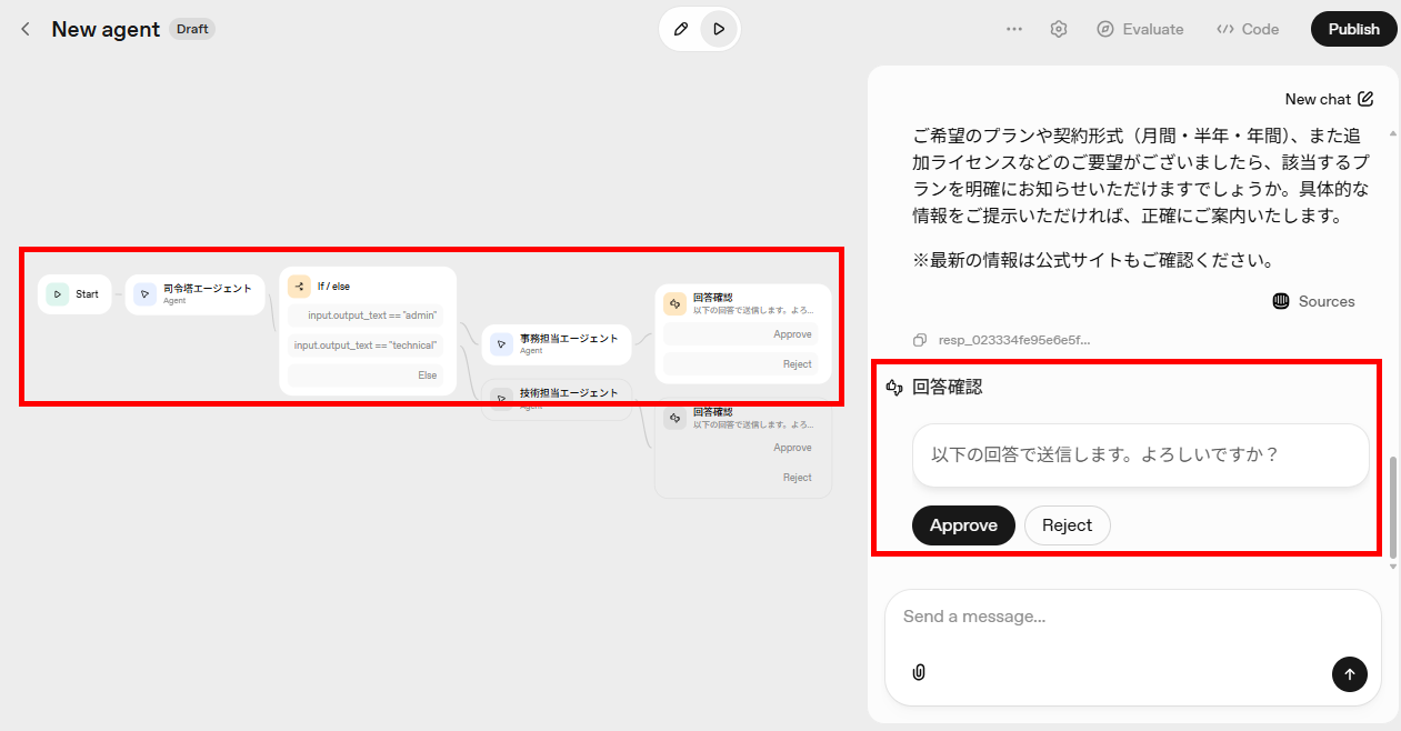 質問が「技術的なこと」なら → 技術担当エージェントが回答