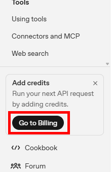 Agent Builderの利用には、クレジットカード情報の登録(クレジットの購入)が必要になるため、登録を行います。
