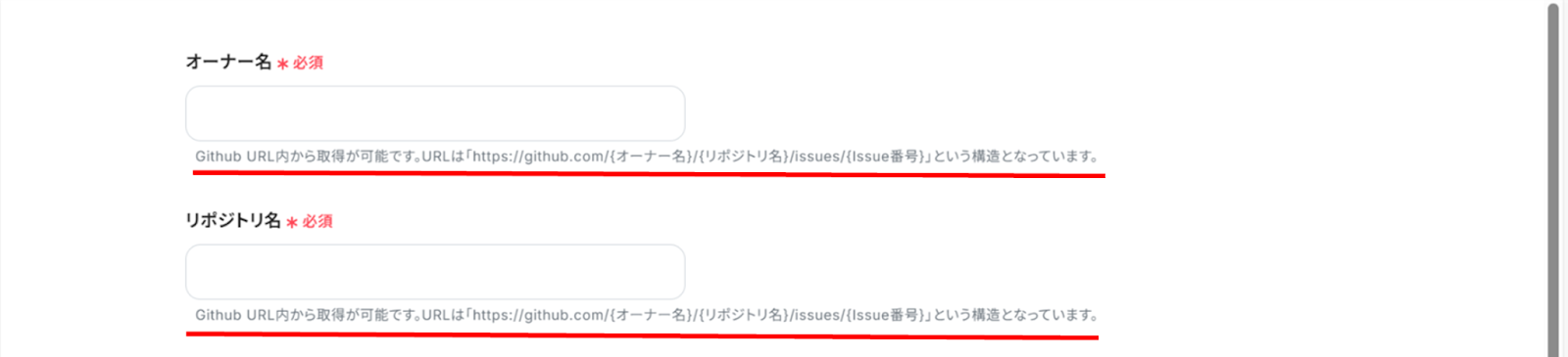 (3)「API接続設定」画面から、赤線を確認の上、オーナー名、リポジトリ名を入力します。