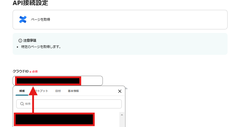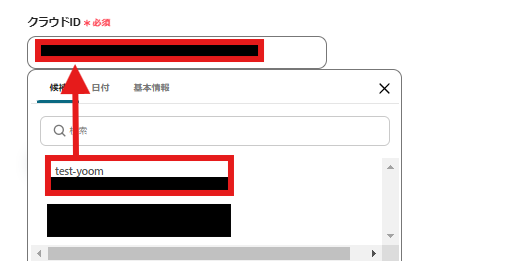 クラウドIDの入力項目をクリックすると以下の画面のようにアウトプットが表示されます。