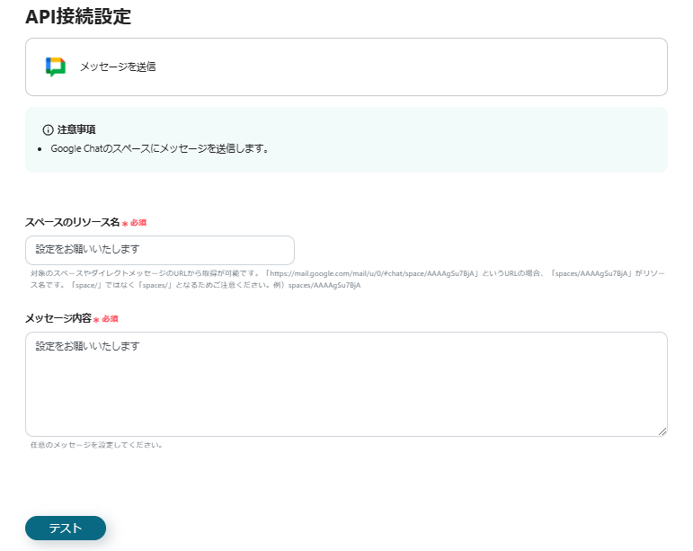 最後にGoogle Chatへのメッセージの内容の設定を行います。