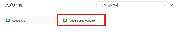 検索窓にGoogle Chatと入力し、表示された候補のGoogle Chat(OAuth)をクリックしましょう。