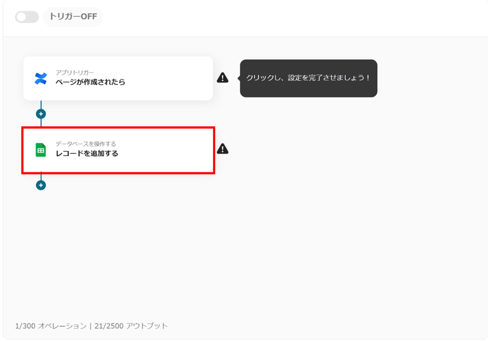 (1)次にGoogle スプレッドシートと連携して、レコードを追加します。 「レコードを追加する」をクリックします。