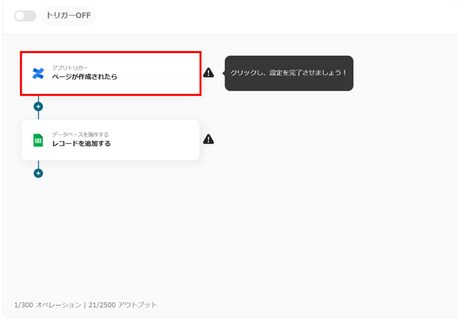 Confluenceでページが作成されたらGoogle スプレッドシートに追加するフローです。