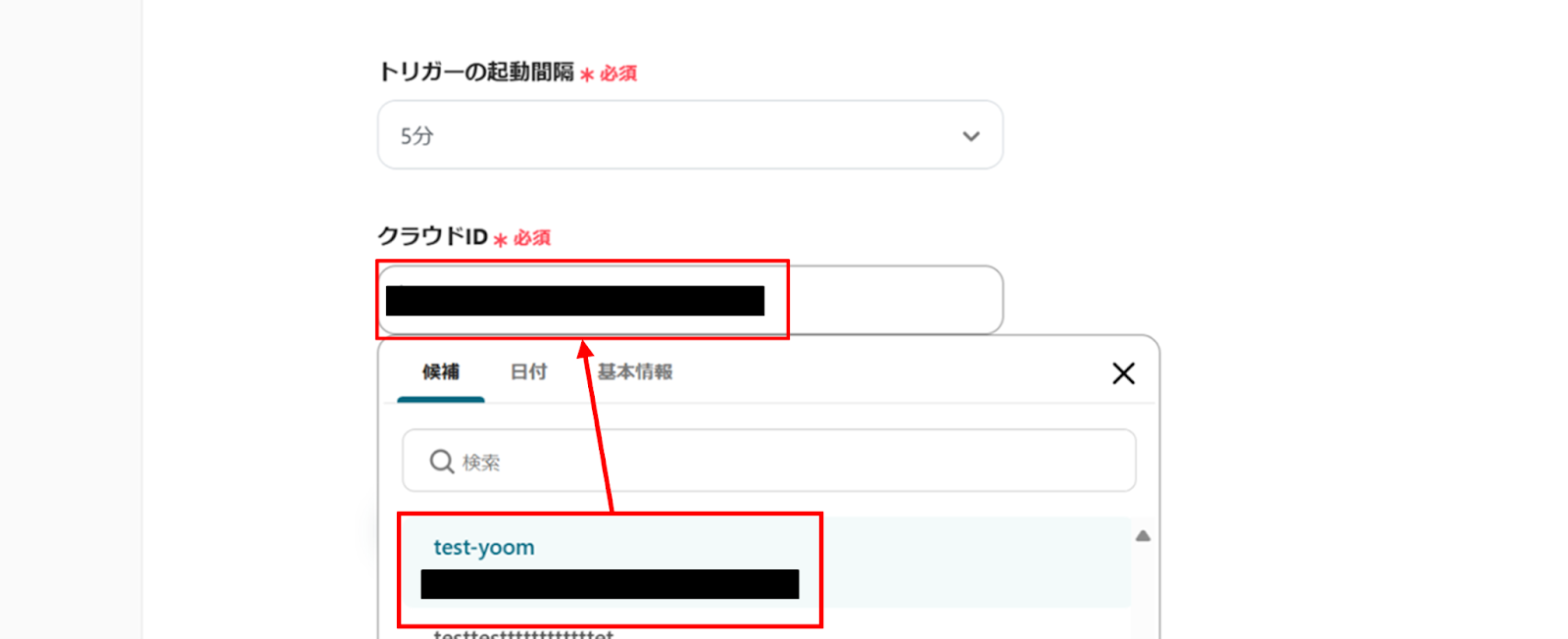 (3)「アプリトリガーのAPI接続設定」画面から、トリガーの起動間隔を選択します。 トリガーの起動間隔はプルダウンより5分、10分、15分、30分、60分の間隔から選択してください。 ※トリガーの起動間隔はプラン によって最短の起動間隔が異なりますが、基本的に短い設定がおすすめです。