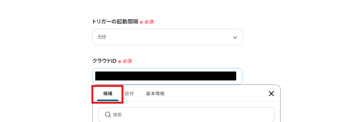 3.トリガーの起動間隔とクラウドIDを設定してください。