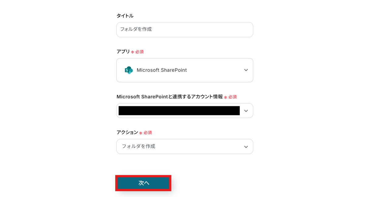 ステップ4:Microsoft SharePointでフォルダを作成する設定