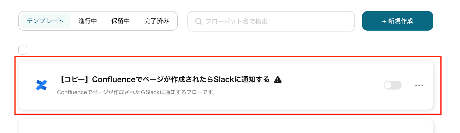 では、「Confluenceでページが作成されたらSlackに通知する」のテンプレートを使ったフローボットを作成していきましょう。