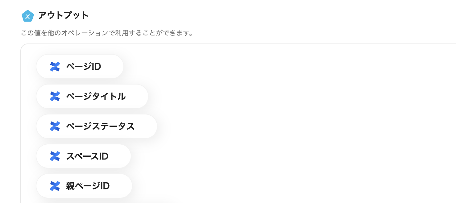 アウトプット情報は、「この値を他のオペレーションで利用することができます。」という注釈の通り、この後のステップで引用・活用できます。