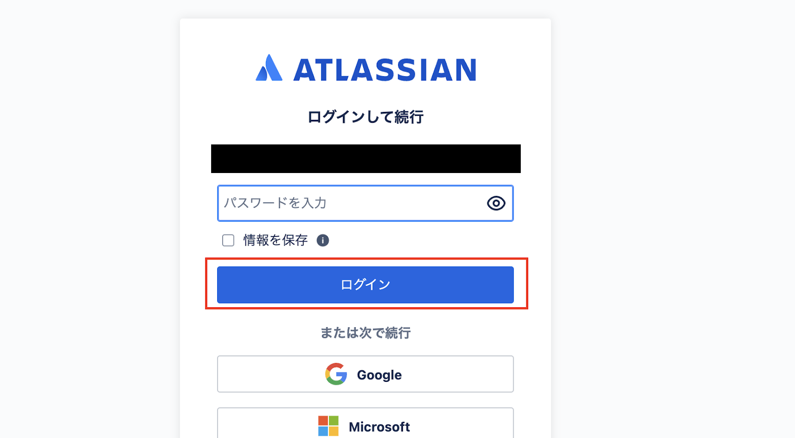 (3)Confluenceのログイン画面に移行するので、アカウントに登録しているメールアドレスを入力し、パスワードを入力した後、[ログイン]をクリックします。