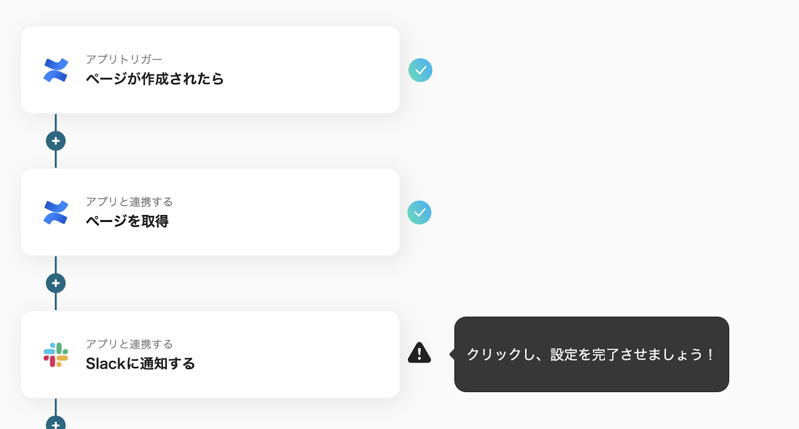 (1)最後に、3つ目のアクション「Slackに通知する」をクリックしましょう。