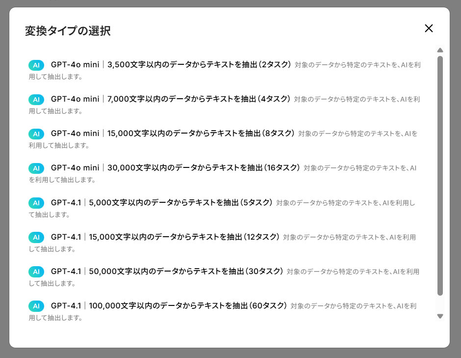 ただし、AIによるテキスト抽出は、使用するAIの判断により正確に抽出できない可能性もあります。