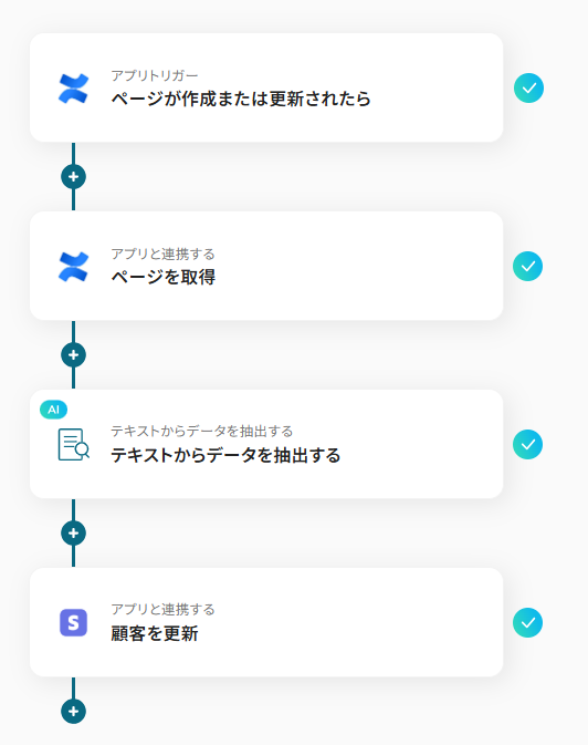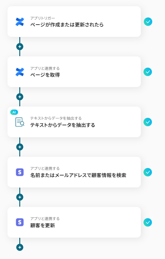 この連携は、AIによるデータ抽出処理を含むため、Confluenceの自由な形式のテキストから必要な情報を抜き出して連携でき、手作業による登録工数とヒューマンエラーを削減できます。