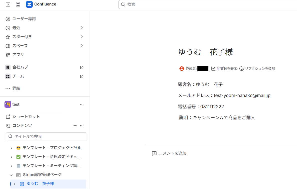 Confluenceにページが作成されたら、Stripeに顧客を作成する