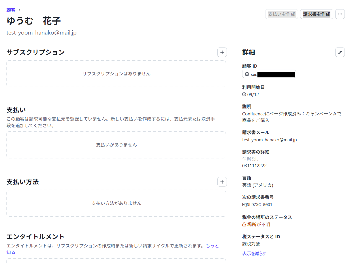 ConfluenceのページにStripeの顧客IDが記載されているかどうかで、構成が変わる点にご注意ください。