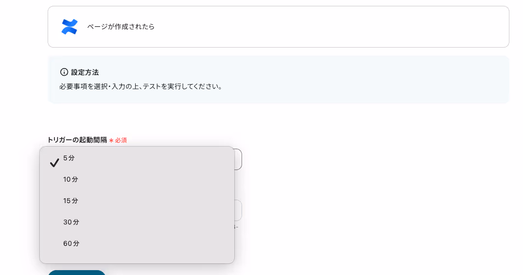※トリガーの起動タイミングは、5分、10分、15分、30分、60分のいずれかで設定できます。