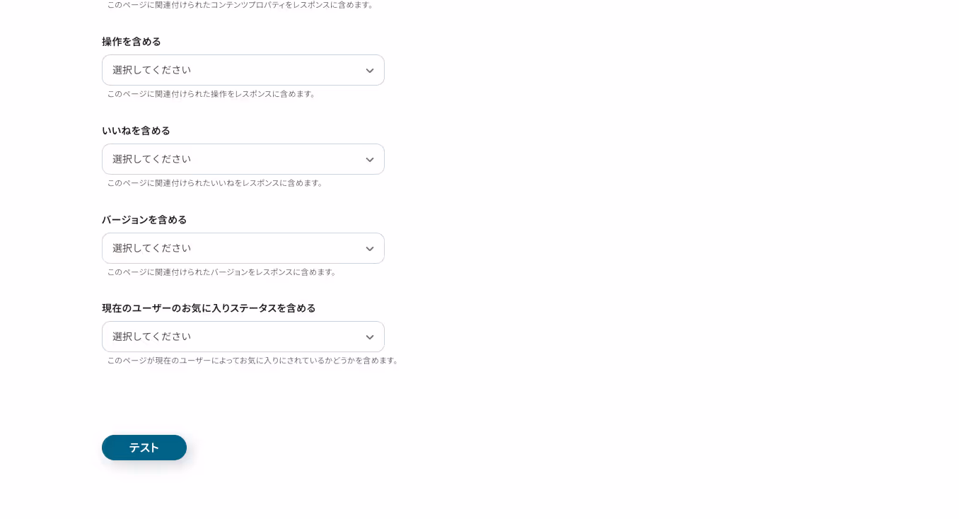 他にも必要な項目があればプルダウンから設定およびテキストを入力し、「テスト」をクリックしましょう。