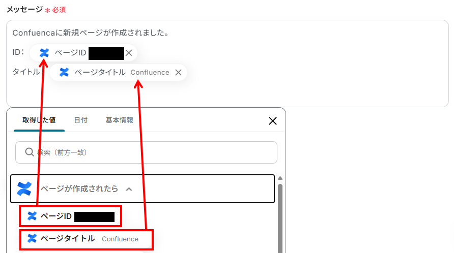 テスト用ページの準備が整ったら、フローボットに戻り「テスト」をクリックしてみましょう。成功すれば、「取得した値」にConfluenceの情報が追加されるはずです。