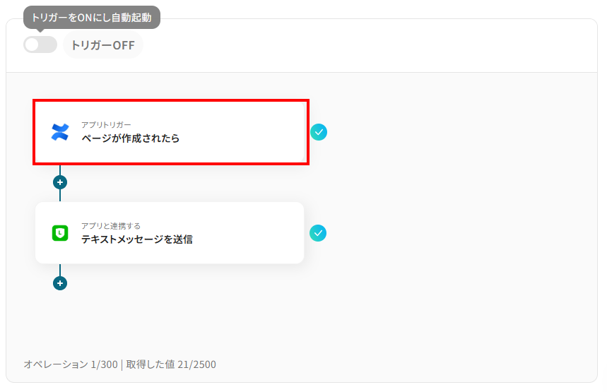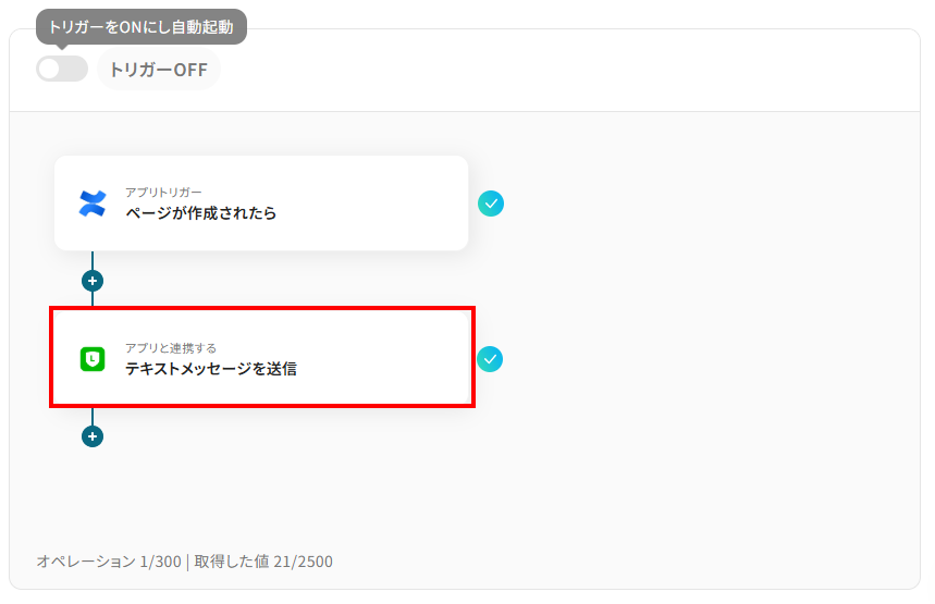 このワークフローを活用すれば、ConfluenceとLINE公式アカウントを連携させ、ページ作成をトリガーに自動で通知を送信できます。