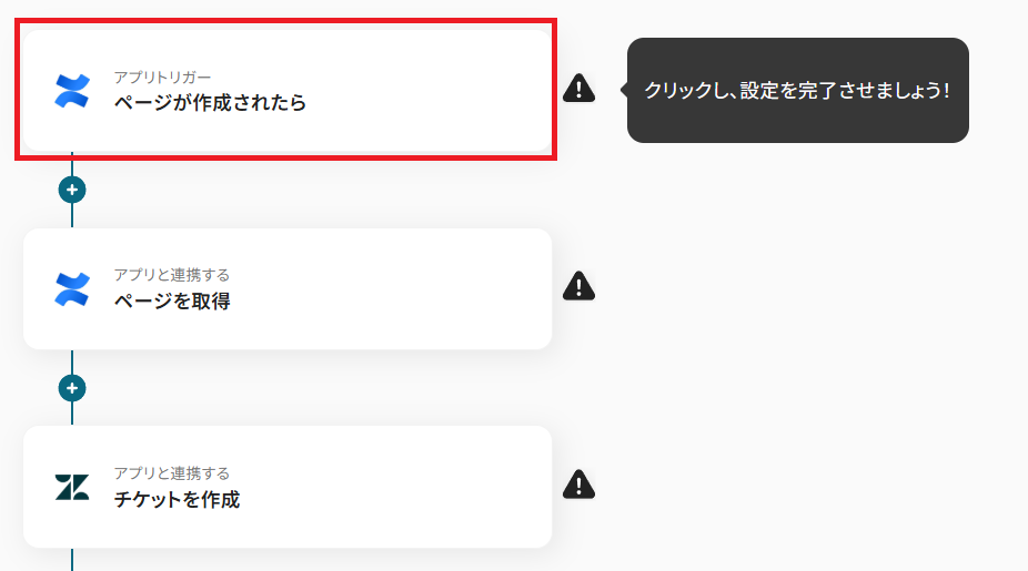 このワークフローを活用すれば、Confluenceで特定のページが作成された際にZendeskのチケット作成を自動化できるため、ZendeskとConfluence間の連携を円滑に進めることが可能です。