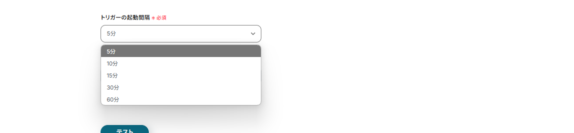 トリガーの起動タイミングは、5分、10分、15分、30分、60分のいずれかで設定できます。