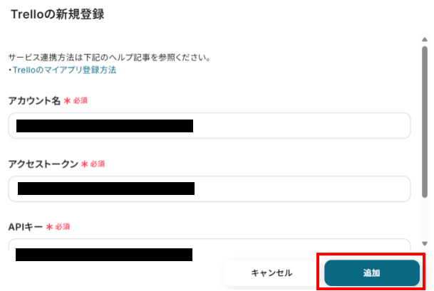 Trelloのマイアプリ登録には下記項目の入力が必要です。