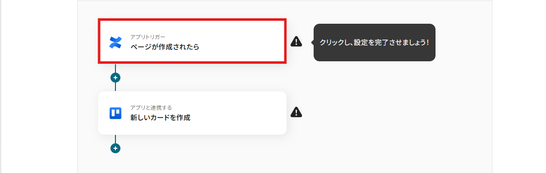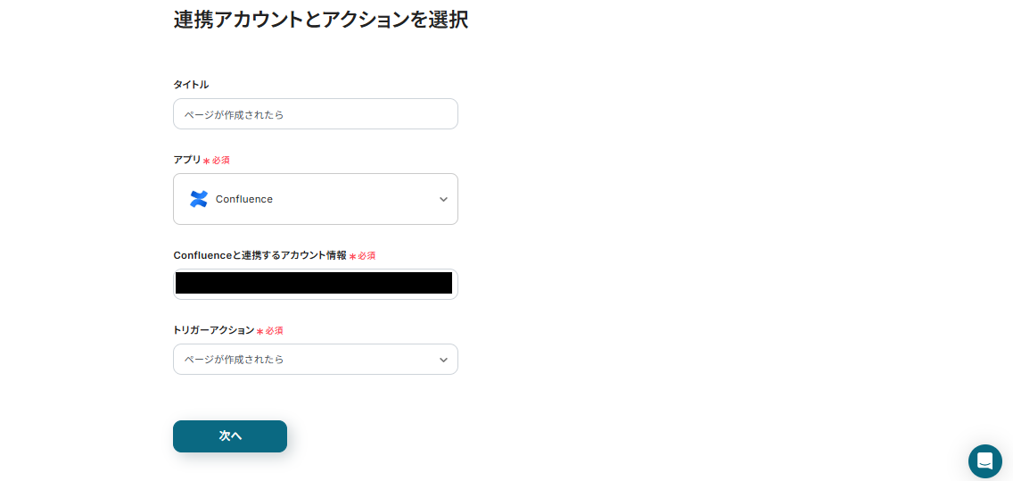 まずは、Confluenceアイコンの「ページが作成されたら」という項目を選択して設定していきましょう!