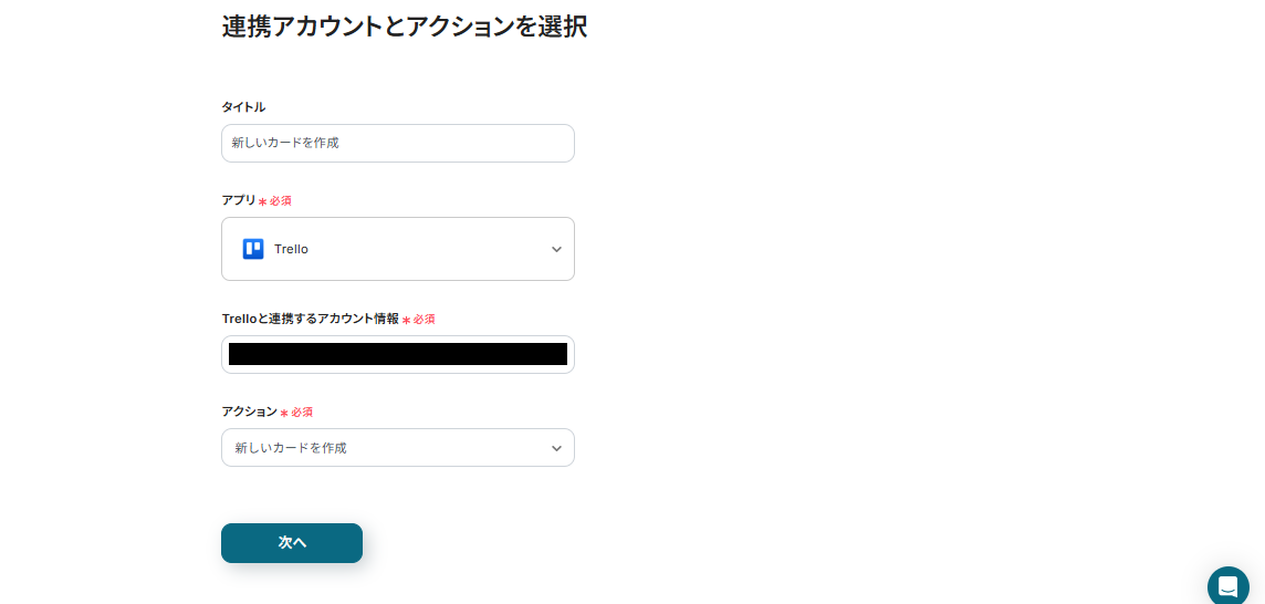 次のステップでは、Trelloアイコンの「新しいカードを作成」という項目を設定しましょう。