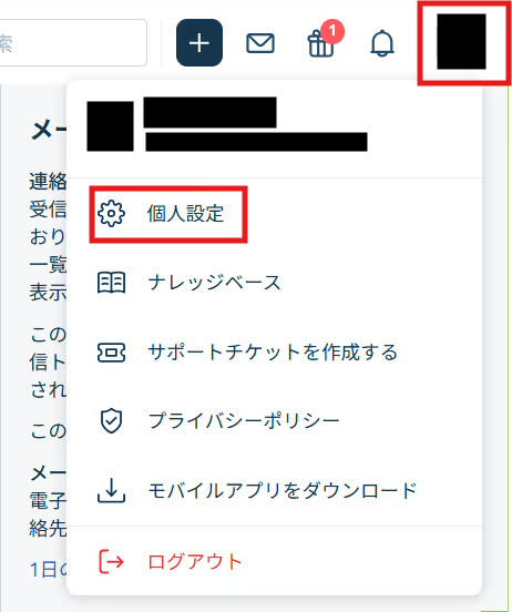 「アクセストークン」「お使いのバンドルエイリアス」は、Freshsalesから取得します。Freshsalesにログインし、右上の人物アイコンから「個人設定」を選択してください。