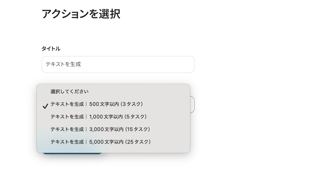 次に、2つ目の「テキストを生成」をクリックします。生成アクションの設定についてはこちらのページにも記載されています。