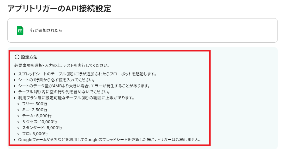 ステップ3:Google スプレッドシートのトリガー設定