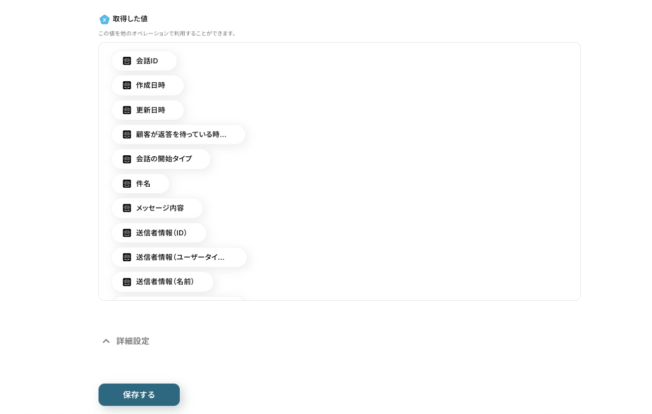 このステップで取得した値はこの後の設定で活用できます。