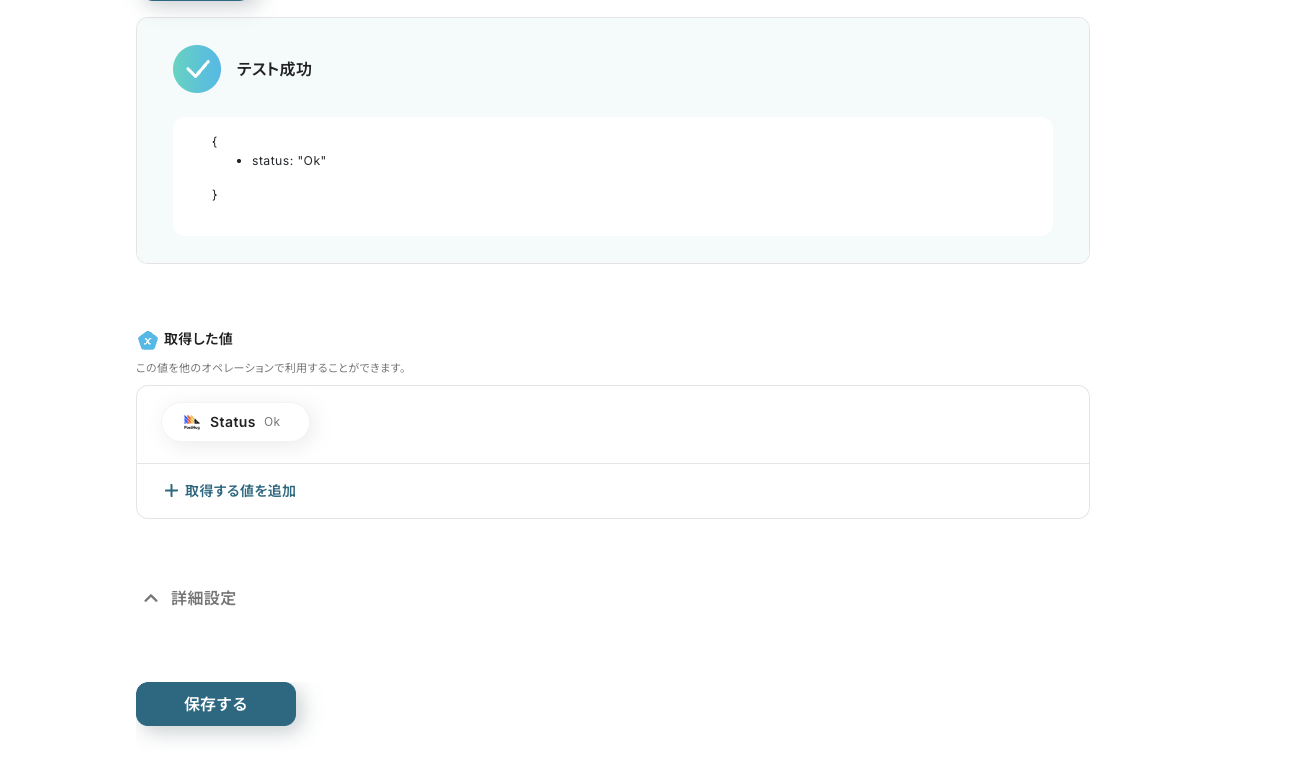 テスト完了を確認して『保存する』を押しましょう。