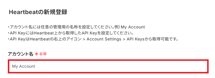 このキーワードは任意で指定可能なため、どのようなキーワードが含まれている場合のみHeartbeatにデータ転記を行いたいのかにより変更してください。