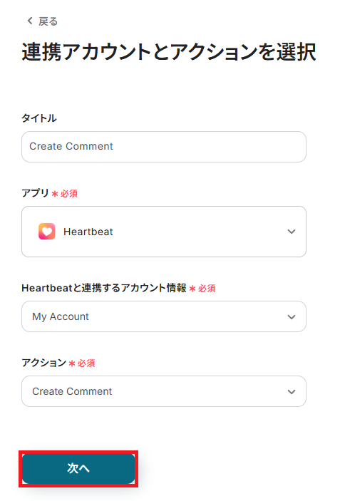 LINE公式アカウントで特定のメッセージを受け取ったら、HeartBeatにCommentを作成する