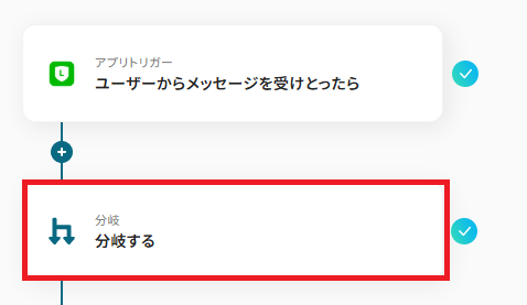 ・分岐はミニプラン以上のプランでご利用いただける機能(オペレーション)となっております。フリープランの場合は設定しているフローボットのオペレーションはエラーとなりますので、ご注意ください。