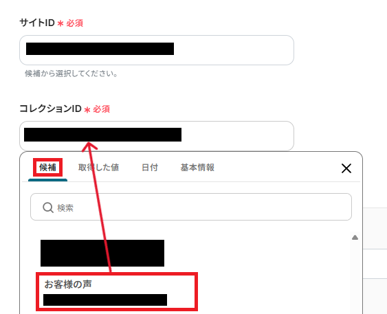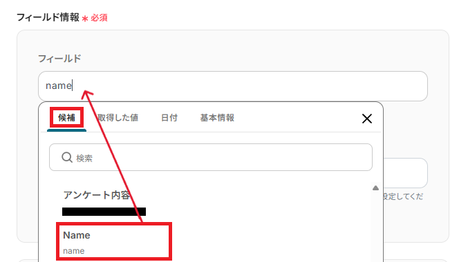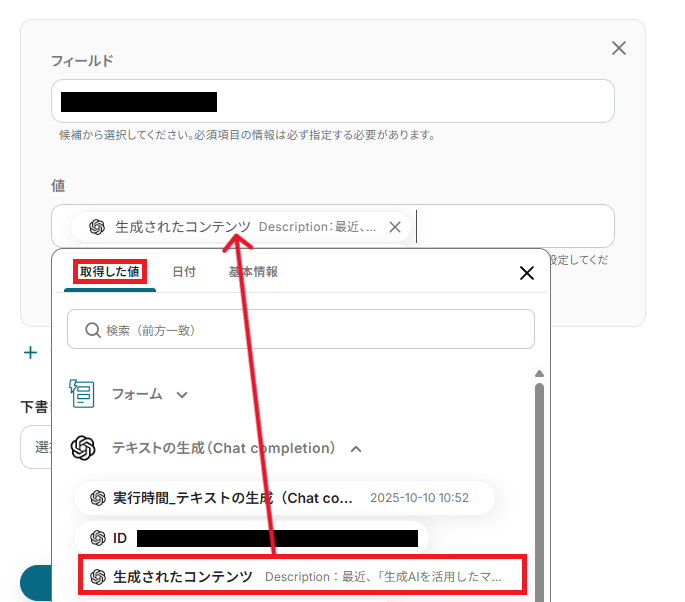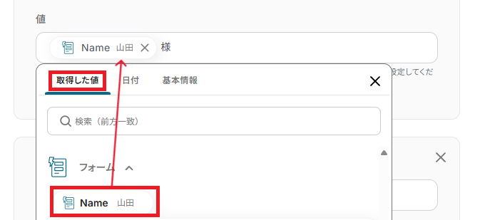 この際、下記画像のように、取得した値から前アクションで入力したフォームの回答値を交えてプロンプトを設定してください。