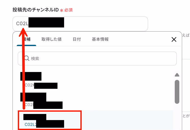 フィールドをクリックし、候補の中からチャンネルを選択してください。